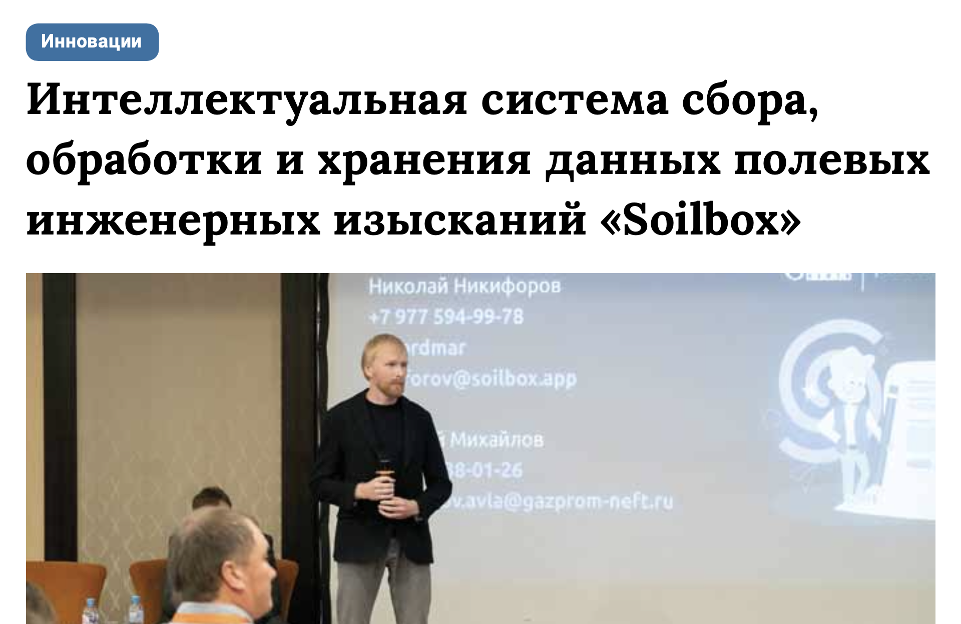 В ходе конференции «Автоматизация и цифровизация инженерно-геологических изысканий и геотехнического проектирования. Опыт применения перспективных технологий» в октябре 2024 г. возможности программы представили основатель компании-разработчика — Николай Никифоров и руководитель управления новых технологий и импорто-замещения департамента по технологическому развитию ПАО «Газпром нефть» Алексей Михайлов.